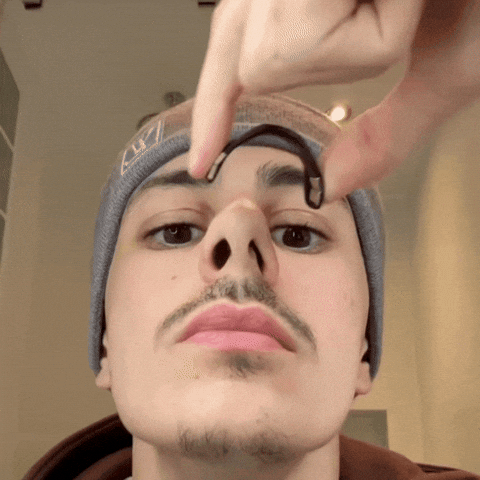 - Pega cada adhesivo sobre el lateral de cada aleta nasal, a la misma altura, con la piel bien estirada.