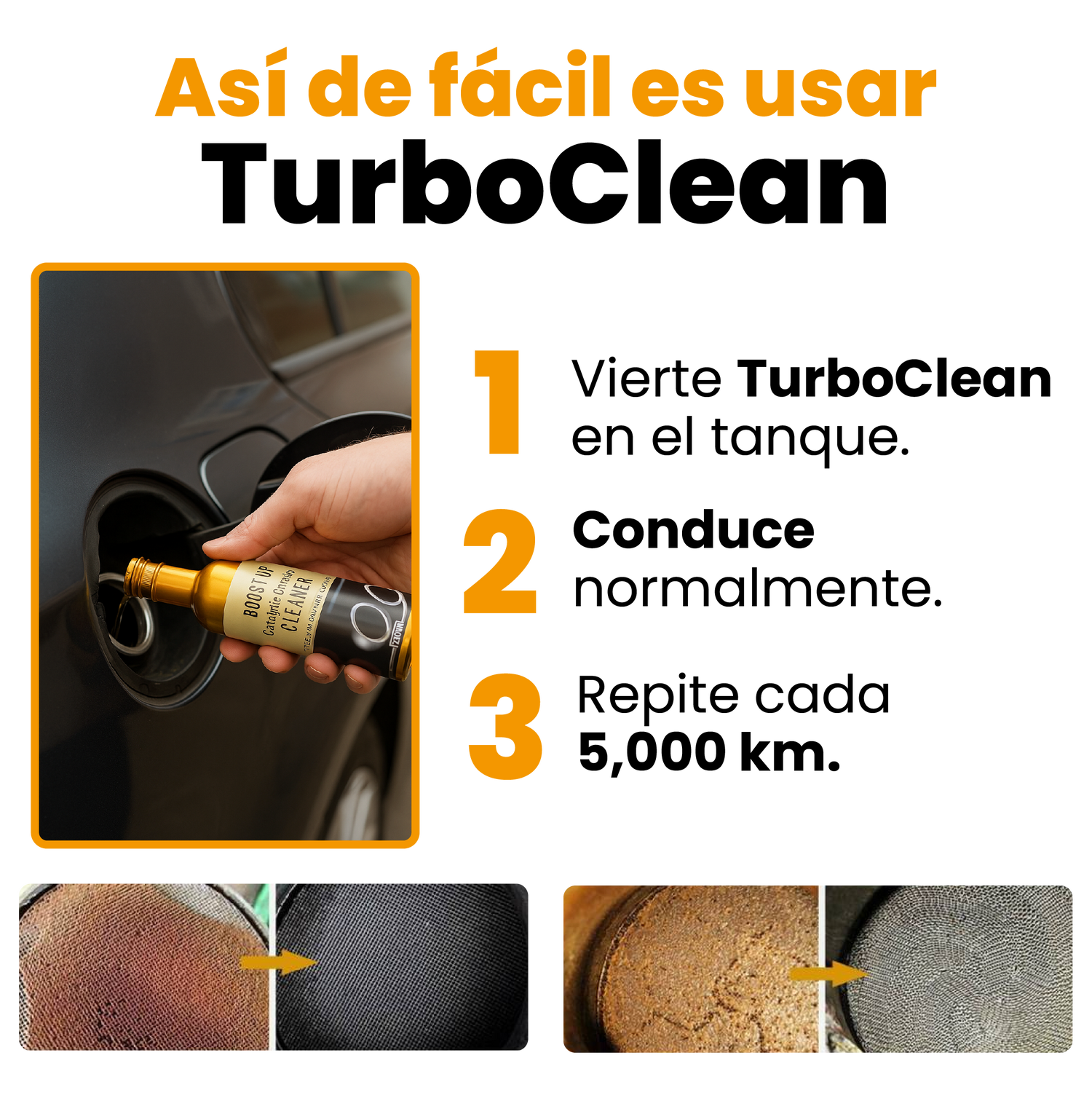 Sí, es 100% seguro. TurboClean no daña el motor, no afecta el aceite ni requiere cambios extra. Su fórmula está diseñada para limpiar sin alterar el rendimiento ni poner en riesgo tu vehículo.