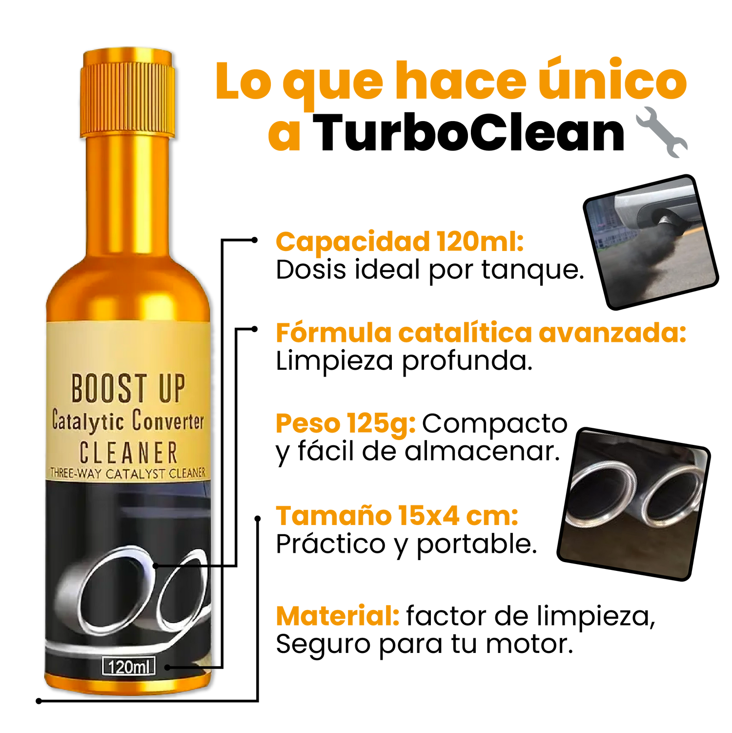 TurboClean funciona gracias a una fórmula diseñada para desintegrar y remover los residuos acumulados en el catalizador y el sistema de escape. Esto permite que el motor trabaje con mayor eficiencia, reduciendo el desgaste y evitando costosas reparaciones. Una solución práctica y confiable para prolongar la vida de tu vehículo.